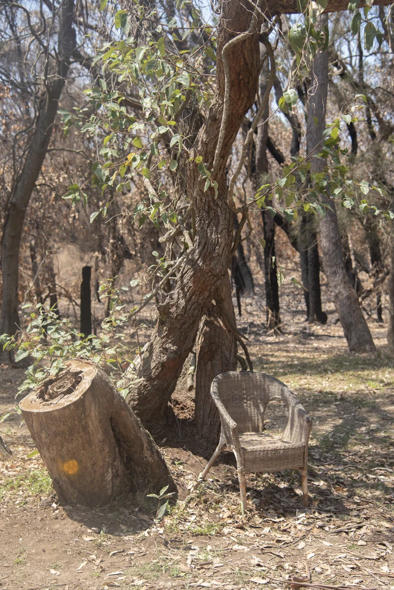 It was confronting. Driving through the mountains, high enough to be able to see through valleys way into the distance felt wrong. It was like the haunting intimacy of seeing a balding woman without her wig on. You know you shouldn’t be able to see that much of the bald landscape underneath the trees and yet, there it was on display. The trees were charred and black or red like the bark of gums, accustomed to being cooked and falling off in sheets, efficiently setting about the process of regrowth after many fire seasons. Amongst this sepia toned landscape, a small shock of green. A flamboyance of colour burst forth as a creeper winds its green foliage up a charcoal trunk basking in so much revealed sunlight. Further along near a dry creek bed a fern leaf continues to grow beneath scorched edges, looking like a lush emerald, gold tipped feather of a tropical bird.